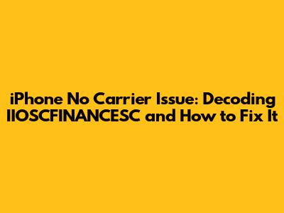 Hey guys! Ever faced that dreaded "No Carrier" message on your iPhone? It's super frustrating, especially when you need to make a call or check your messages. One of the reasons you might see this issue popping up could be related to something called IIOSCFINANCESC. Sounds technical, right? Don't worry; we're going to break it down in a way that's easy to understand, and more importantly, we'll give you some actionable steps to get your iPhone back on track.