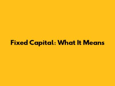 Fixed Capital: What It Means