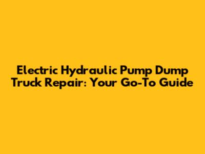 Fixing Your Electric Hydraulic Pump Dump Truck: A Guide