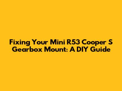 Fixing Your Mini R53 Cooper S Gearbox Mount: A DIY Guide