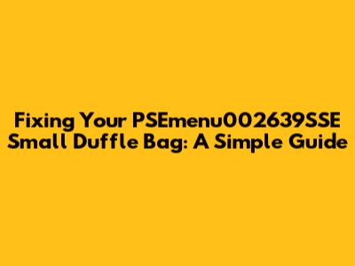 Fixing Your PSEmenu002639SSE Small Duffle Bag: A Simple Guide