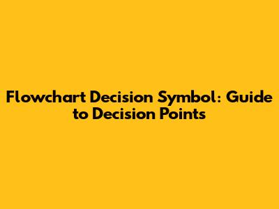 Flowchart Decision Symbol: Guide To Decision Points