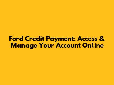 Ford Credit Payment: Access & Manage Your Account Online