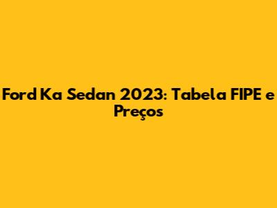 Ford Ka Sedan 2023: Tabela FIPE E Preços