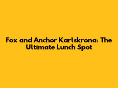 Fox And Anchor Karlskrona: The Ultimate Lunch Spot