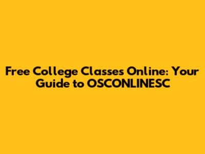 Free College Classes Online: Your Guide To OSCONLINESC