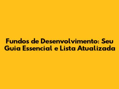 Fundos De Desenvolvimento: Guia Completo E Lista Atualizada