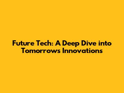Future Tech: A Deep Dive Into Tomorrow's Innovations