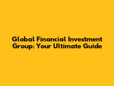 Global Financial Investment Group: Your Ultimate Guide