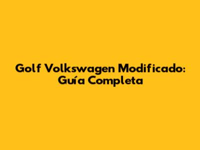 Golf Volkswagen Modificado: Guía Completa