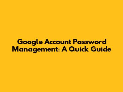 Google Account Password Management: A Quick Guide