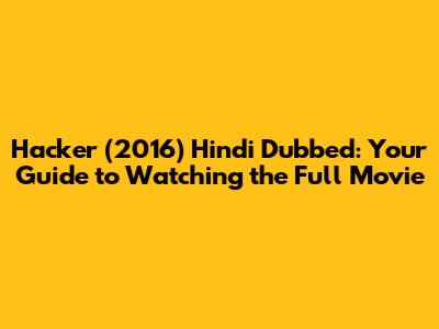 Hacker (2016) Hindi Dubbed: Watch The Full Movie Online