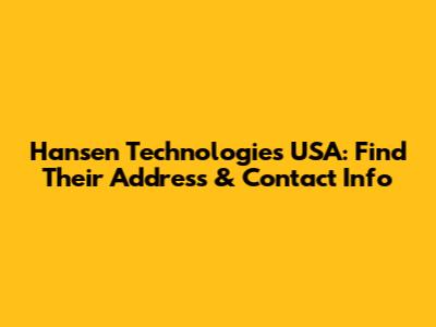 Hansen Technologies USA: Find Their Address & Contact Info