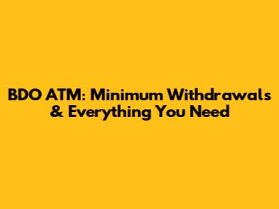 BDO ATM: Minimum Withdrawals & Everything You Need