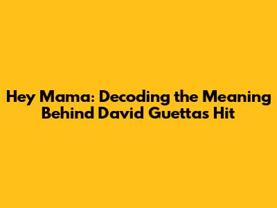 Hey Mama: Decoding The Meaning Behind David Guetta's Hit