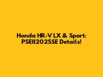 Alright, let’s double down on figuring out exactly what PSEII2025SE means for the 2025 Honda HR-V LX and Sport. This alphanumeric code likely points to a specific package, trim level update, or compliance standard for that model year. It could refer to a limited edition, a special equipment group, or updates related to emissions or safety regulations. Think of it as a secret code that unlocks the full details of a particular configuration.