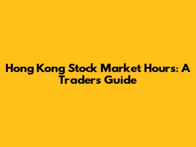 Hong Kong Stock Market Hours: A Trader's Guide