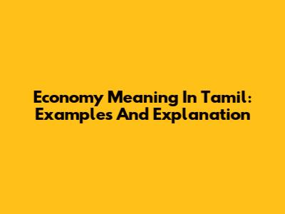 Economy Meaning In Tamil: Examples And Explanation