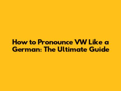 How To Pronounce VW Like A German: The Ultimate Guide