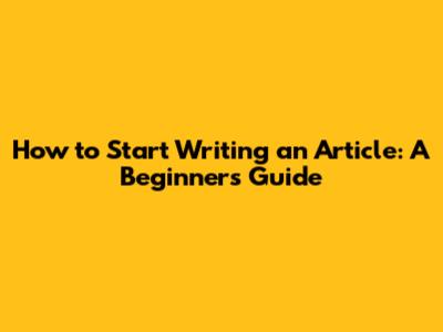 How To Start Writing An Article: A Beginner's Guide