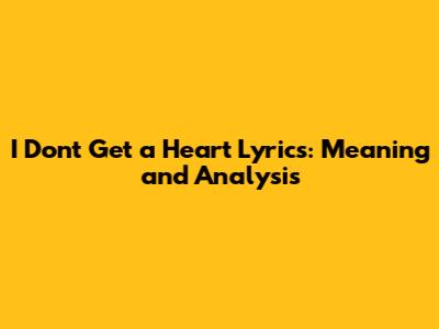I Don't Get A Heart Lyrics: Meaning And Analysis
