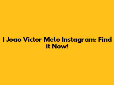 I Joao Victor Melo Instagram: Find It Now!