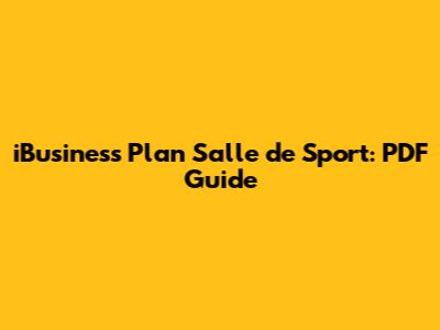 IBusiness Plan Salle De Sport: PDF Guide