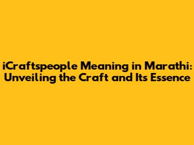 ICraftspeople Meaning In Marathi: A Comprehensive Guide
