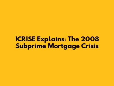 ICRISE Explains: The 2008 Subprime Mortgage Crisis