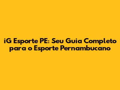 iG Esporte PE: O Que Você Precisa Saber