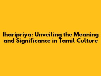 Hey everyone, let's dive into something super interesting today – the name Iharipriya and what it signifies, especially in the context of Tamil culture! If you're here, chances are you're curious about this beautiful name, whether you're considering it for someone special or just love exploring the depths of names and their meanings. We'll break down everything from the name's origins to how it's perceived and used. So, grab a cup of coffee, and let's get started!