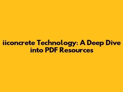 Hey guys! Ever found yourself lost in the vast world of concrete technology, searching for reliable resources? You're not alone! Let's explore iiconcrete technology and how PDF resources can be your best friend in mastering this field. We'll dive into what iiconcrete technology encompasses, why it's essential, and where you can find those golden PDF nuggets to boost your knowledge.