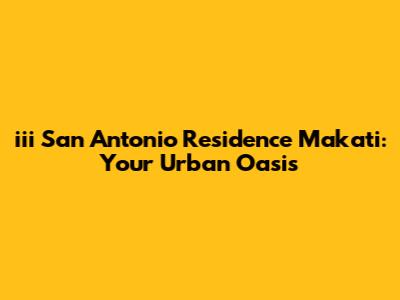 Hey guys! Looking for a sweet spot to call home in the heart of Makati? Let's dive into iii San Antonio Residence, a gem that might just be your perfect urban oasis. Makati, as you know, is where it's all happening – the buzzing business district, the vibrant nightlife, and the oh-so-tempting food scene. Living here means you're right in the middle of it all, and iii San Antonio Residence offers a fantastic way to experience this dynamic city life.