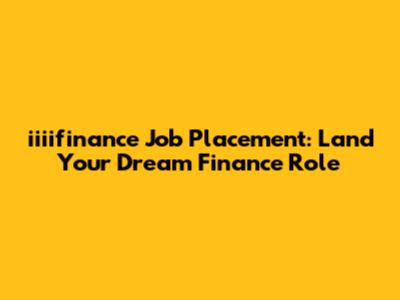 Iiiifinance Job Placement: Land Your Dream Finance Role