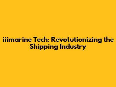 Iiimarine Tech: Revolutionizing The Shipping Industry