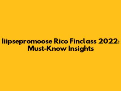 Iiipsepromoose Rico Finclass 2022: Must-Know Insights
