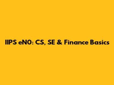 IIPS EN0: CS, SE & Finance Basics