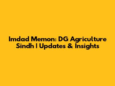 Imdad Memon: DG Agriculture Sindh | Updates & Insights