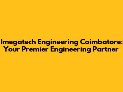 Hey guys! Looking for top-notch engineering solutions in Coimbatore? You've landed in the right spot. Let's dive into why Imegatech Engineering stands out as a premier choice for all your engineering needs. In this article, we will explore the comprehensive services offered by Imegatech Engineering Coimbatore, their commitment to quality, and why they are a trusted name in the industry.