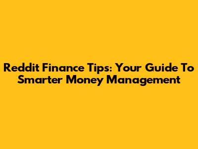 Reddit Finance Tips: Your Guide To Smarter Money Management