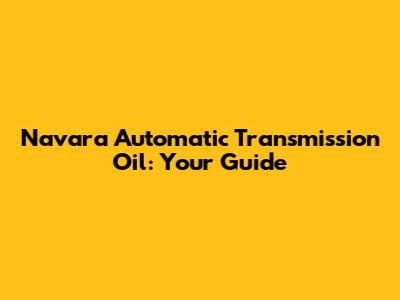Navara Automatic Transmission Oil: Your Guide