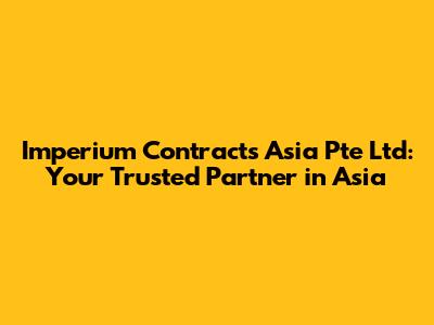 Hey guys! Looking for a reliable partner for your business ventures in Asia? Let's dive into Imperium Contracts Asia Pte Ltd, a company that's making waves in the region. This isn't just another corporate spiel; it's your inside look at what makes Imperium Contracts Asia a standout choice for businesses aiming to thrive in the Asian market. This article will explore the company's core strengths, services, and why it should be on your radar.