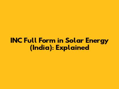INC Full Form In Solar Energy (India): Explained