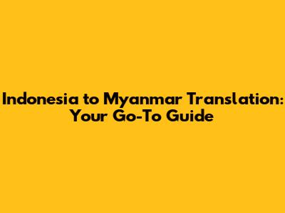 Indonesia To Myanmar Translation: Your Go-To Guide