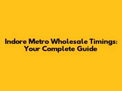 Indore Metro Wholesale Timings: Your Complete Guide