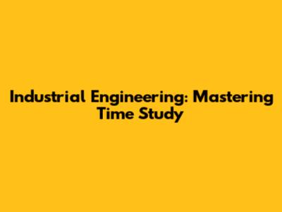 Industrial Engineering: Mastering Time Study
