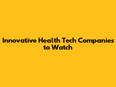 Innovative Health Tech Companies To Watch