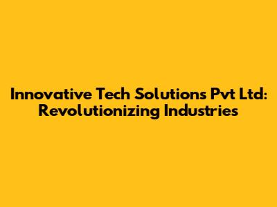 Innovative Tech Solutions Pvt Ltd: Revolutionizing Industries