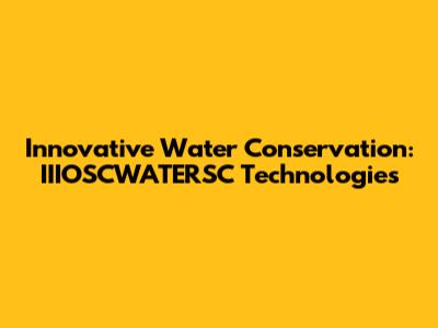 Innovative Water Conservation: IIIOSCWATERSC Technologies
