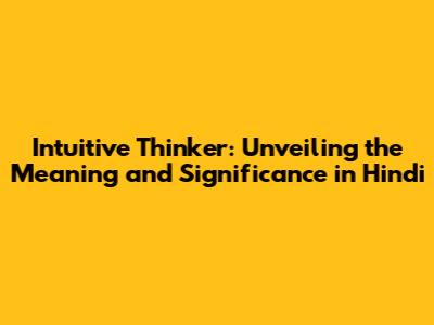 Intuitive Thinker: Meaning & How To Embrace It In Hindi